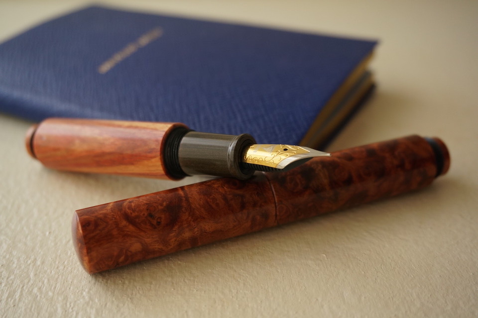 以後アクリル樹脂を筆頭に、希少な木材など様々な素材を独自に仕入れ、オリジナル万年筆を手掛ける。