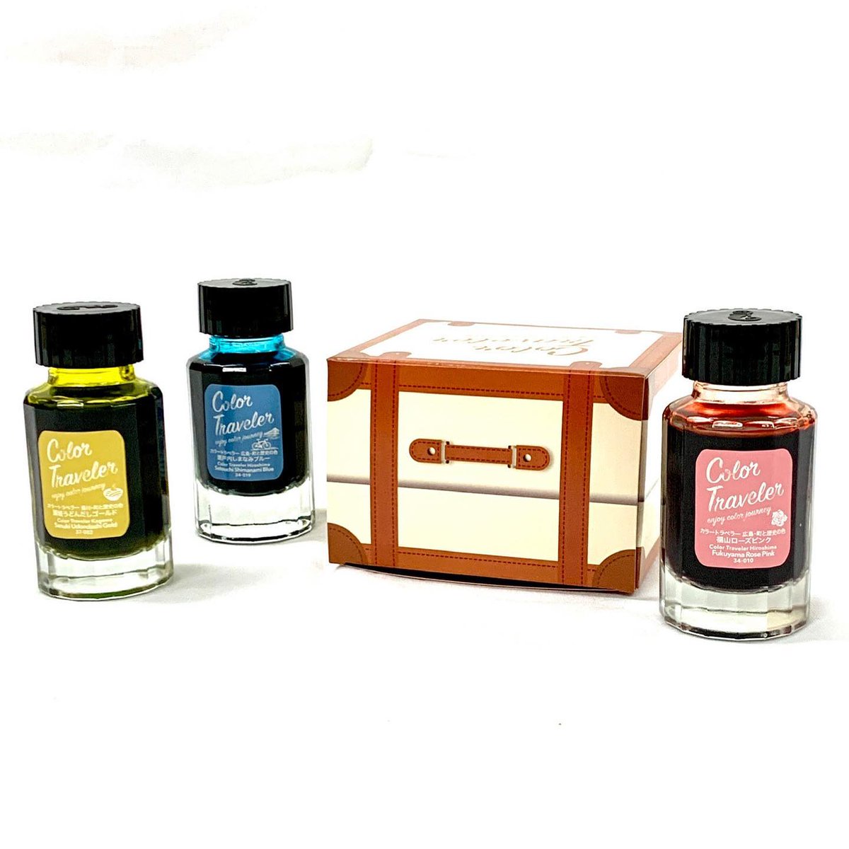 店舗がある広島県・香川県の町や歴史、特産物など旅にまつわるものをコンセプトに作られたオリジナルのインクです。インクでその町に興味を持ってもらって、実際訪れるきっかけになればという願いが込められています。
