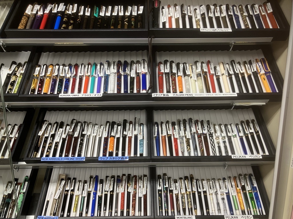 今回は、モンブラン、ペリカン、パーカー、シェ―ファーなどのヴィンテージ品及び現行国産品(パイロット、セーラー、プラチナなど)の特売品、合わせて200本を販売の予定です。蒔絵万年筆も販売致します。