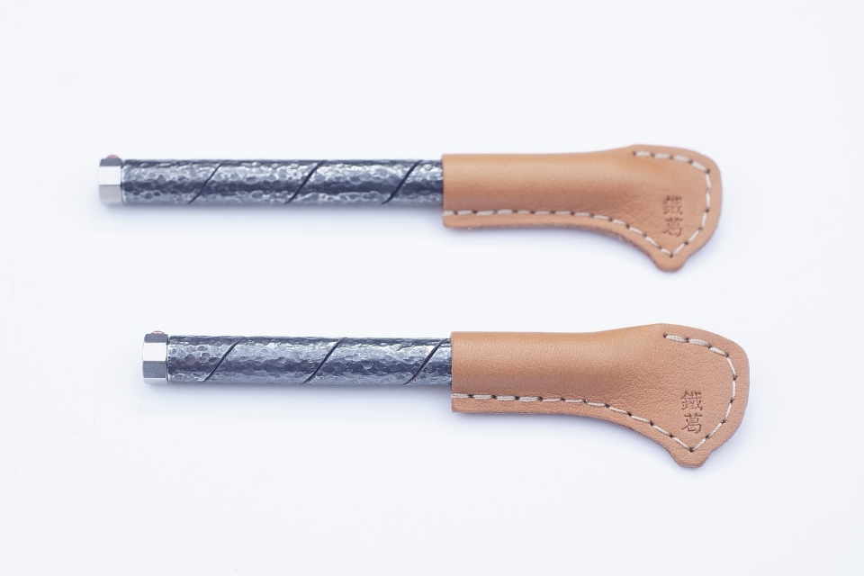 巻張硬筆は火縄銃(銃身)の製作手法を基として製作し、他製品も「鎚目仕上げ」等にしています。生産数が限られており、なかなか目にする事が無いと思います。