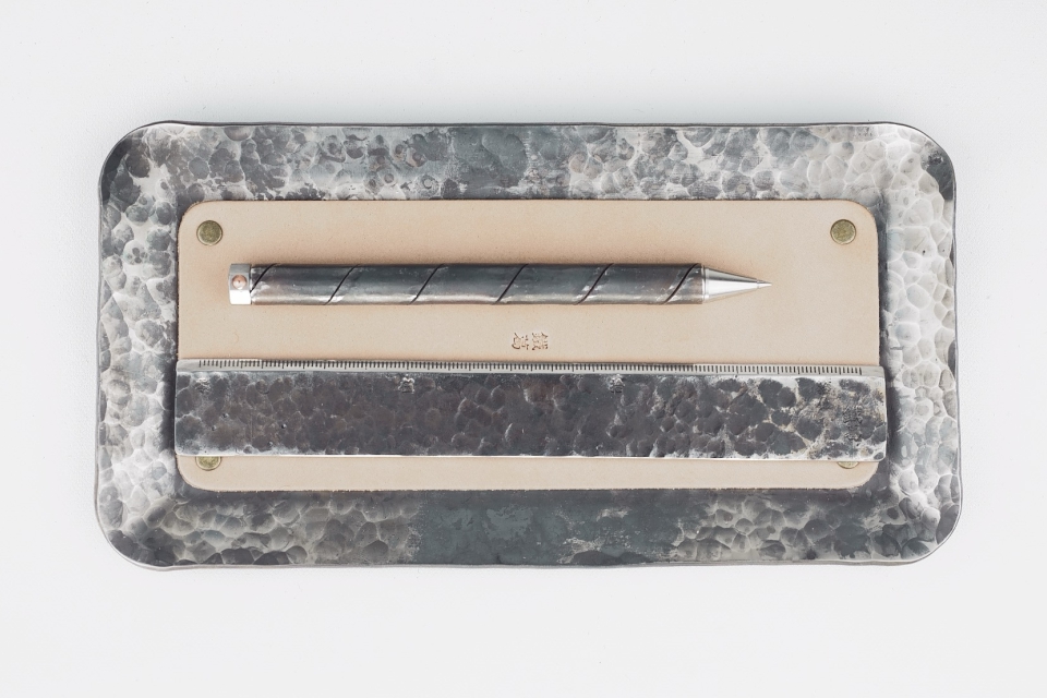 ・巻張硬筆(鍛え肌/鎚目肌)・硬筆挿し・硬筆立て(Ø12穴/Ø14穴)・直尺・硬筆器・洋墨瓶台座(自在式/可傾式)