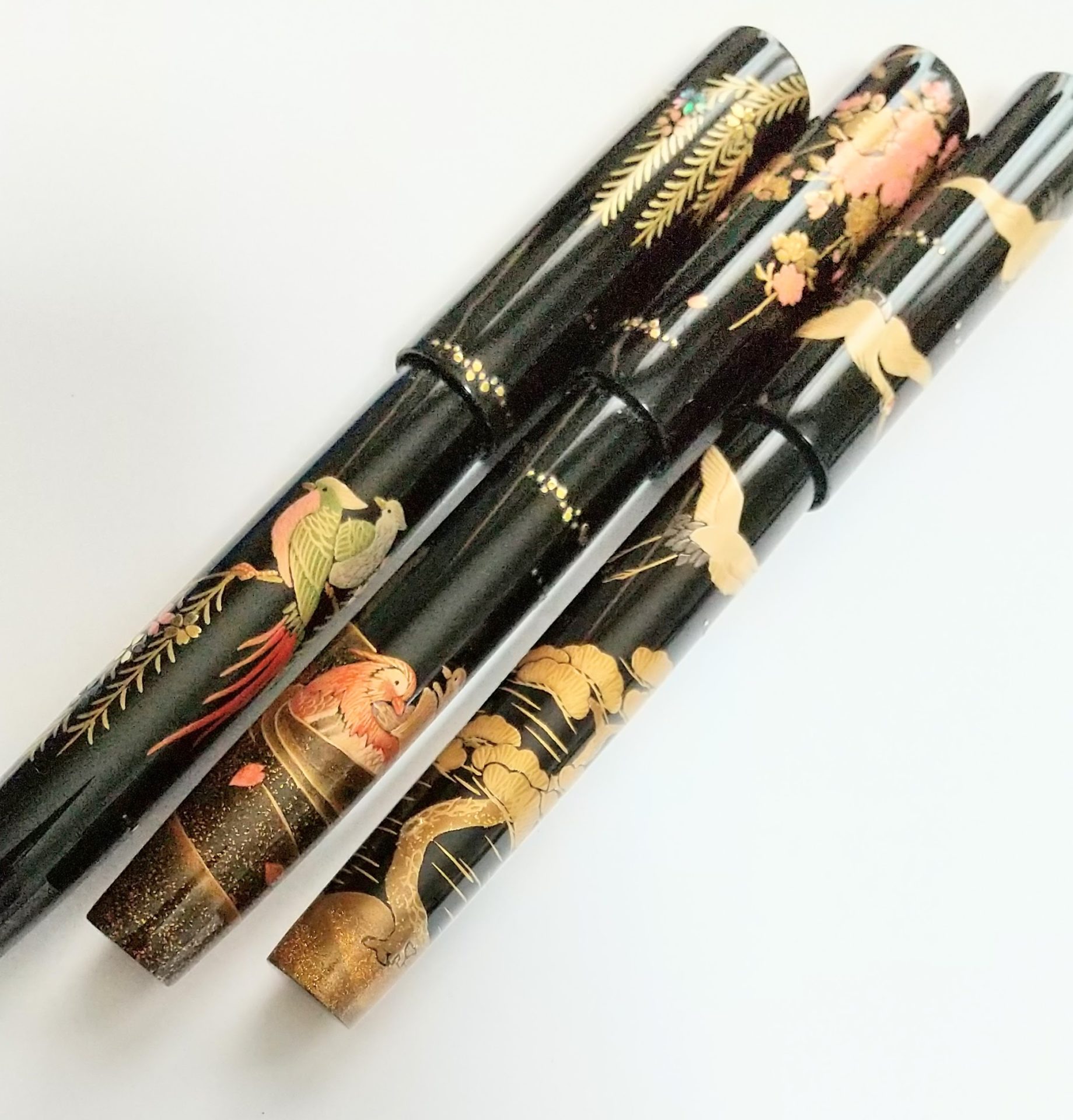 Most of pens are made by natural wood such as Amboyna burl, Desert ironwood, Kurogaki etc. Each is designed to take full advantage of the grains. There are some Maki-e, Chinkin, Urushi pens as well as wooden pens. All of pens are Stylo Art original.